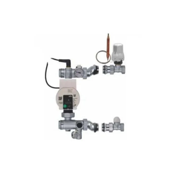 Смесителната група е предназначена за намаляване на температурата към подовото отопление при свързване на нискотемпературна линия към високотемпературна линия.